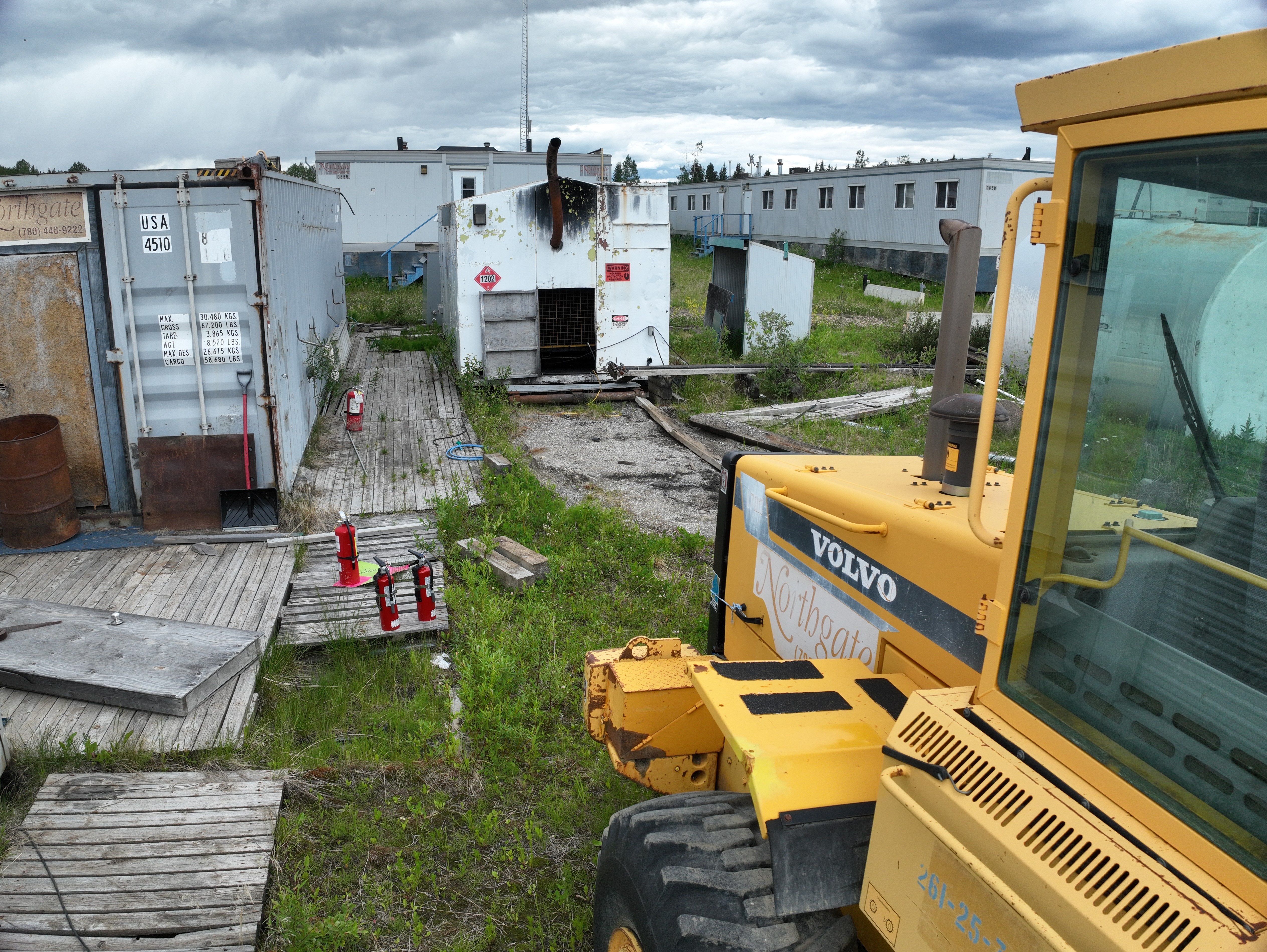 This is exactly the location I have been looking for to create a mesh. Across the road is Buckinghorse River Adventures, with a motel and restaurant. It looked like a good place to spend the night, take a shower, and rest. This part of British Columbia has a lot of oil industry, and these barracks are a good example of some of the infrastructure that is needed. According to the folks at the motel, Northgate brought out these semi-mobile industrial barracks to house personnel, but they havenโt used it since 2013. Since then, it has been semi-abandoned. It is looked after by security, as well as the folks at the motel, so the property is in surprisingly good conditionโno vandalism.