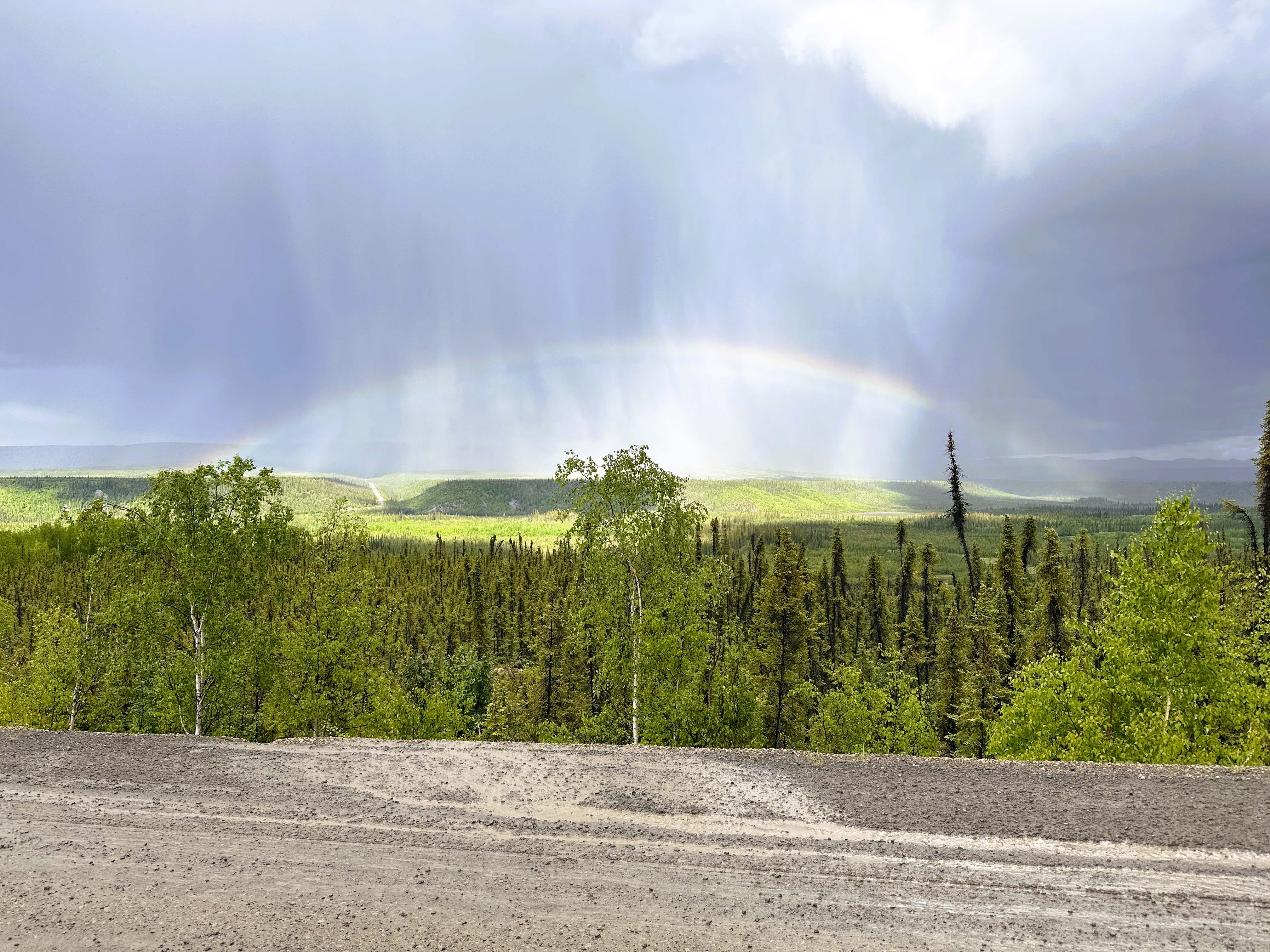 At this point on the Dempster Highway, you are getting very close to the Arctic Circle. Because it was close to summer solstice, at this location, it never becomes fully dark at night.