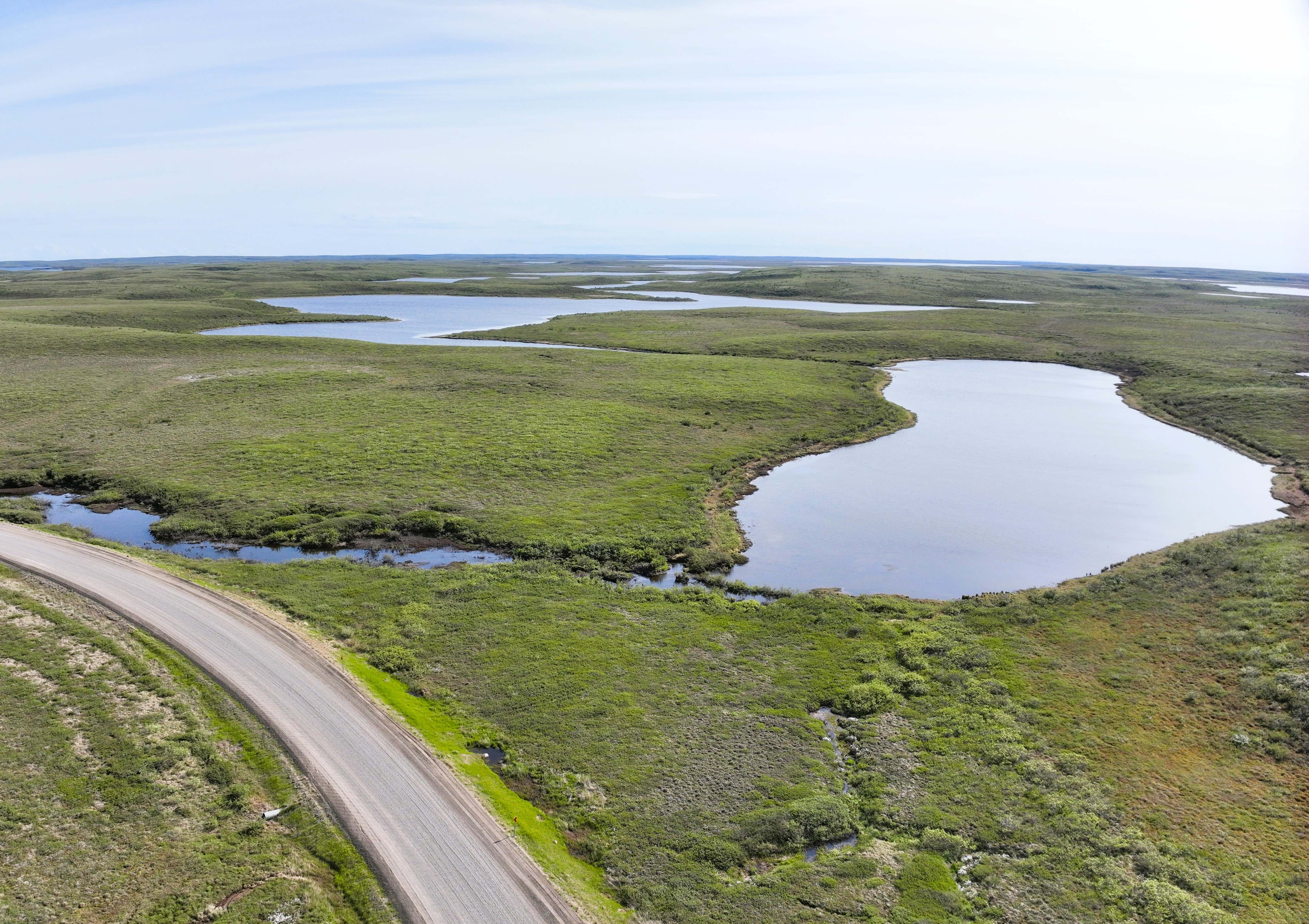 Past the mountains of the Yukon, the land becomes flat, dotted with millions of tiny lakes. Much of the time they are just meltwater from the winterβs snow. They are excellent breeding grounds for mosquitos and flies, and you will notice this easily during the summer months.